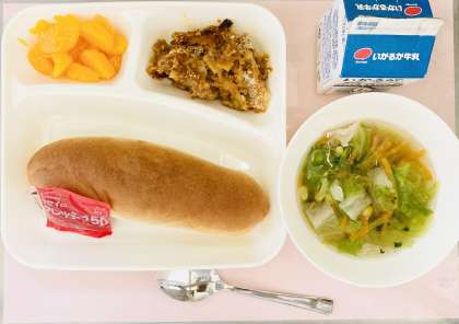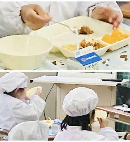 ひき肉をたっぷり使ったミートソースにじゃがいもを加え、1クラス分ずつに分けてからオーブンで焼いています。どの学年でも大好評で、教室では、おかわりに並ぶ列ができていました。