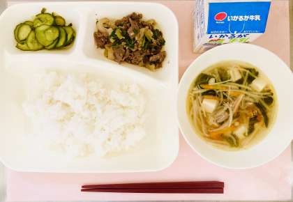 牛肉の下味には、コチジャン、濃口醤油等を使っています。ご飯に良く合う味付けで、子どもたちに大好評でした。