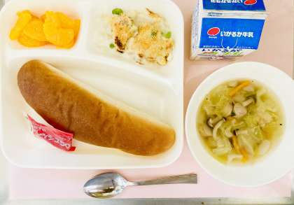 春キャベツを使ったスープです。にんじん、しめじ、ウインナー等も入り、野菜がおいしく食べられる献立でした。