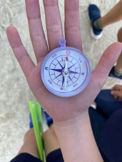 どの方角から傾いているのか方位磁針を使い、方位も確かめ、学習のまとめをしました。