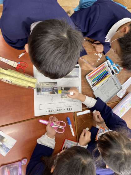 学校たんけんの日まで、2年生のみんなは、1年生に部屋を紹介するためのポスターづくりをしたり、わかりやすく説明するための練習したりしてきました。ポスターをきちんとかくために、その部屋について担当の教職員のところにインタビューへ行ったグループもありました。