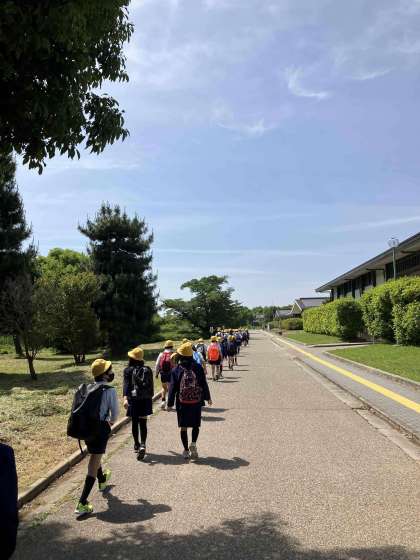 天気にも恵まれ、校外学習実行委員会のあいさつから今日の活動がスタートしました。