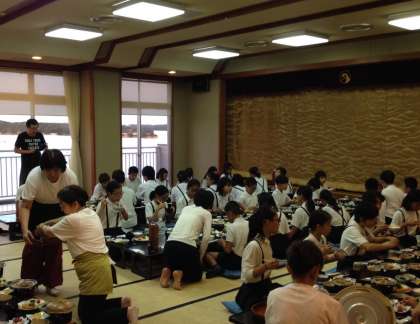 ご馳走を目の前にして子どもたちは喜んでおります。いただきま〜す!
