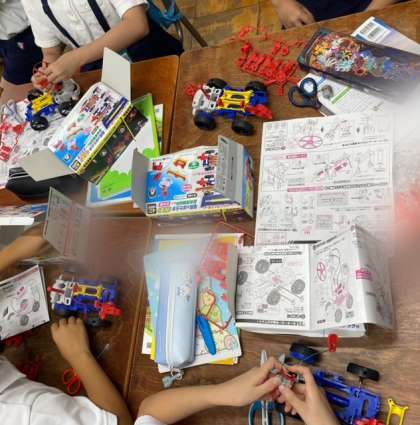 説明書を一生懸命読みながら組み立てたり、分からないところは友だちに聞いたりして作ることができました。