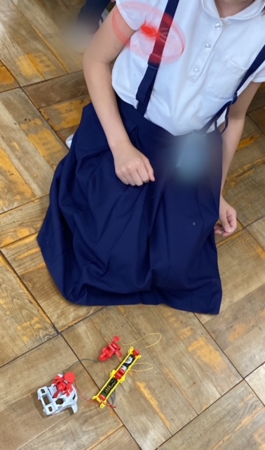 また、組み立てた車は箱に入れてお家に持ち帰っています。