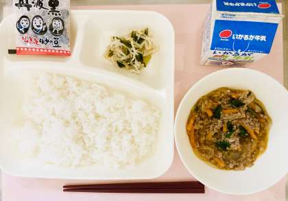 豆板醤、赤味噌、濃口醤油等で味付けしています。春雨のツルツルとした食感が良く、ご飯に良く合う味付けで、どの学年でも大好評でした。