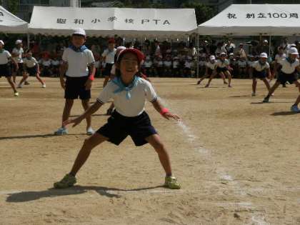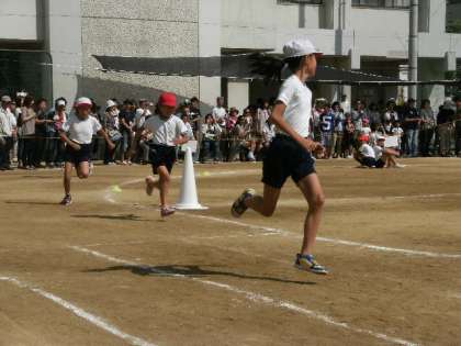 6年生の短距離走と3年生の「みんなでハピネス」の様子です。