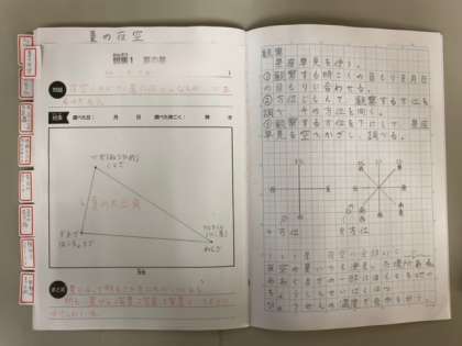 星座早見の使い方を確かめて星座を探したり、どんな星が見えるのかをノートにまとめたりすることができました。