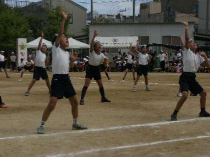 4年生の「トライ・ユア・ドリーム」の「南中ソーラン」です。一つ一つの動作が決まっています。4年生がこの踊りが大好きなことが分かります。
