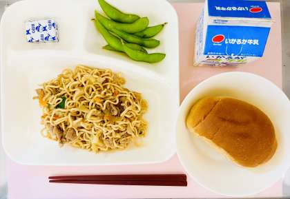 いつもの味付けとは違う焼きそばですが、風味が良く、子どもたちに大好評でした。