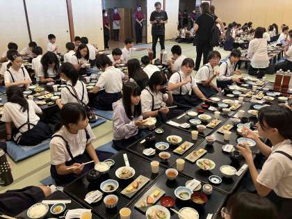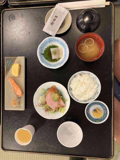 2日目を元気に過ごすため、エネルギーの充電です。朝からのメニューを見て、早く食べたそうです。