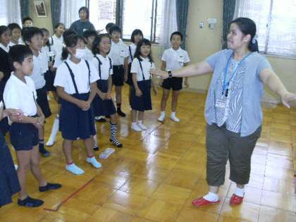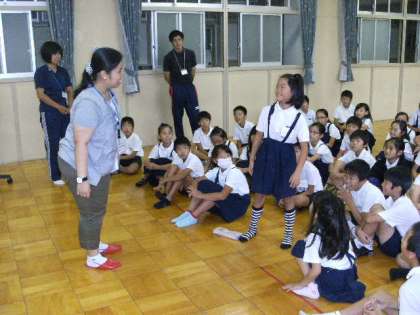 電子黒板を使って英語の歌を楽しく歌い、笑顔とボディランゲージがあれば、どんな国の人ともすぐになかよくなれそうな気がしました。