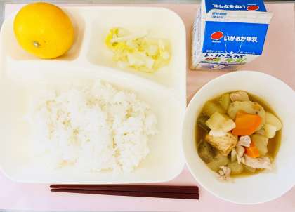 8種類の具材が入った関東煮です。一口サイズで食べやすく、色々な具材を楽しみながら食べられる献立でした。どの学年でも大好評で「色々食べて、おなかいっぱいになった!」と、嬉しそうに話してくれる子もいました。