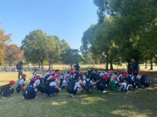 広い公園では、芝生で遊んだり、ハンカチおとしをしたりしました。