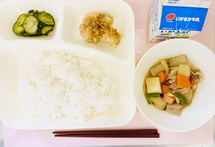 白ねぎ、濃口醤油、米酢、ごま油等を使ってたれを作っています。ご飯に良く合う味付けで、どの学年でも大好評でした。「また作って!」「もっと、大盛りで食べたい!」と、嬉しそうに話してくれる子もいました。