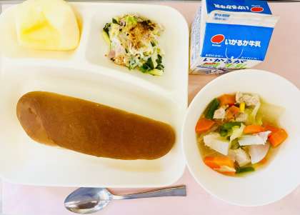 ほうれん草、ベーコン、マカロニ等がたっぷり入ったグラタンです。優しい味付けで、子どもたちに大好評でした。