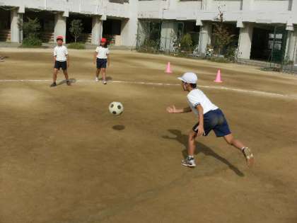 サッカーが得意でない子も活躍できる場面を作りだすのです。サッカーが得意な子は、そうでない子をしっかりとサポートし、チームのメンバーの一人一人が運動の楽しさを味わえるように話し合ってがんばっていました。
