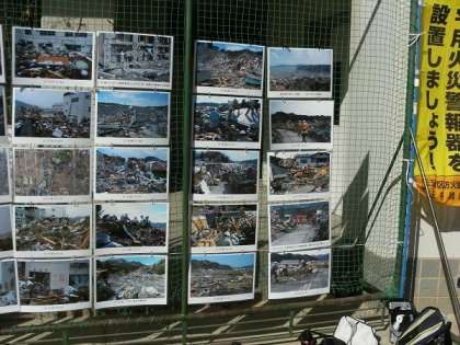 写真は会場に展示された防災関連のコーナーです。東日本大震災の惨状を写真で伝えていました。