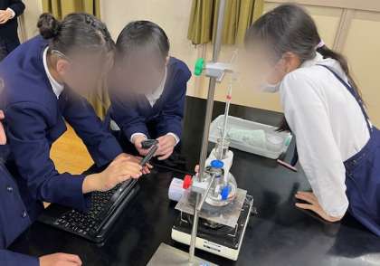 実験では、タブレット端末を使い他の班の結果を大型テレビに映して比較をしました。