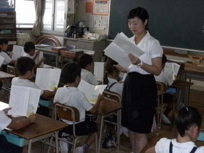 2年生の教室では、国語科物語文「名前を見てちょうだい」の研究授業が行われました。普段の担任の先生とは違っても、2年生の子ども達は、学習の態度もよく、姿勢をきちんと伸ばして教科書の音読をしていました。
