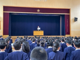 校長先生からは、大切にして欲しい3つの約束「あいさつをする」「約束を守る」「なかよくする」について話がありました。