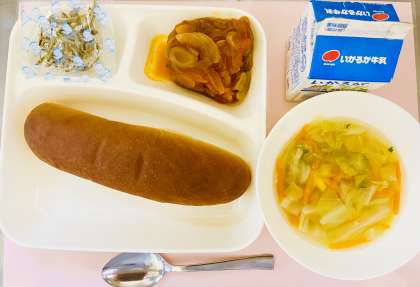 玉ねぎを炒めてから、ケチャップ、ウスターソース等を加えてソースを作り、ハンバーグを加え、じっくりと煮込んで仕上げています。ソースまでおいしく食べられる味付けで、子どもたちに大好評でした。