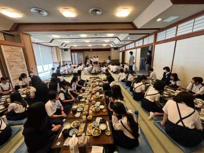 2日目を元気に過ごすために、エネルギーの充電です。朝からのメニューを見て、「美味しそう〜」と言う姿も見られました。