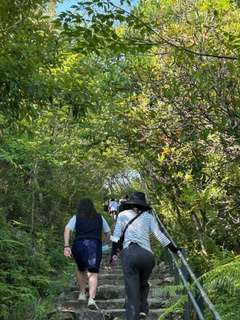 山道を抜けた先にある横山展望台から見る絶景に、子どもたちは感動しています。子どもたちはいい経験になったと思います!