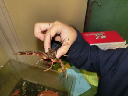 かわいがるというよりも「もてた!」が一番。そして、子どもたちの遠慮ないつっこみに威嚇するザリガニに「かわいいーピースしてるよ」と喜ぶ2年生。笑ってしまいます。