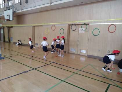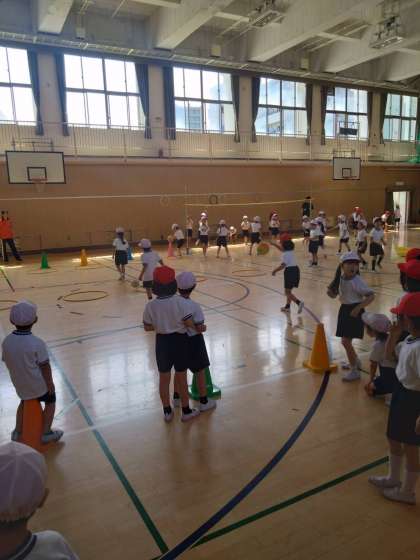 リレーをしたり、輪の中にボールを当てたりと、賑やかです。