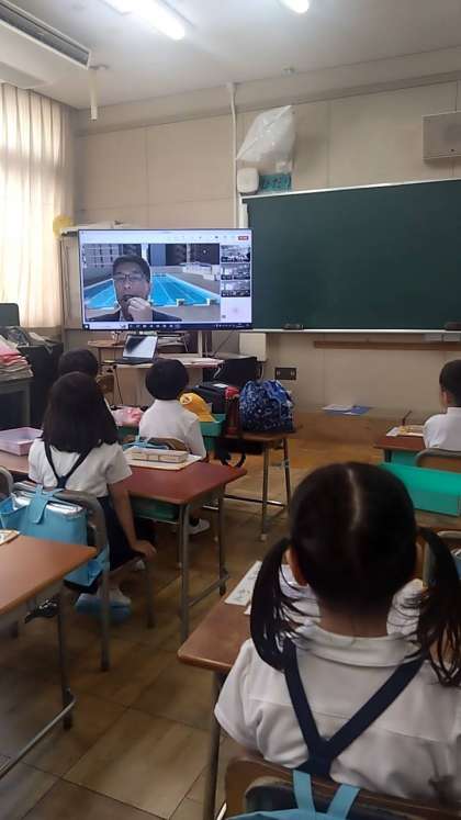 今週の児童朝会は校長先生から水泳の学習についてのお話がありました。