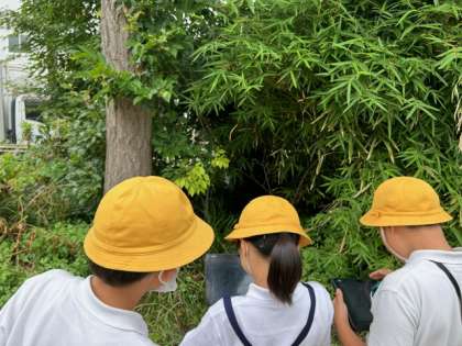 春にみたのと同じ植物がどのように変化しているかをタブレットで記録しました。