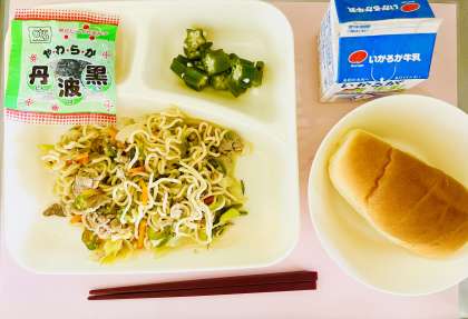 濃口醤油、薄口醤油などで味付けした焼きそばです。「いつもと違う味だったけど、めっちゃおいしかった!」「おかわりした!」と、嬉しそうに話してくれる子もいました。