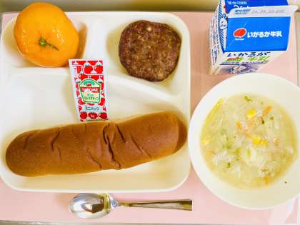 野菜をたっぷり使ってスープを作り、豆乳を加えて仕上げています。優しい味付けで食べやすい献立でした。