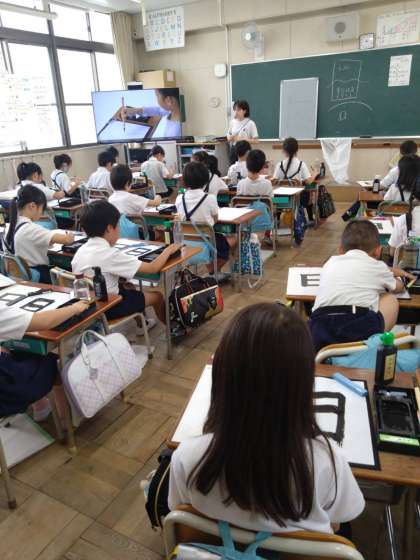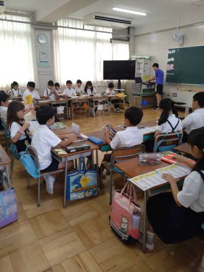 また、違うクラスでは新しい机の形態で国語の学習をしていました。