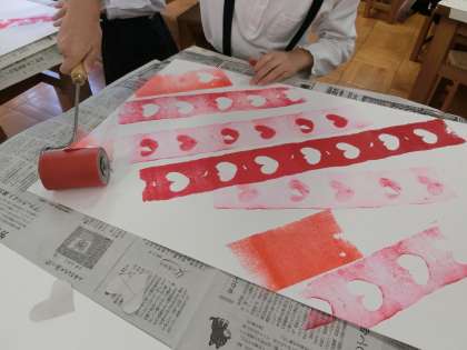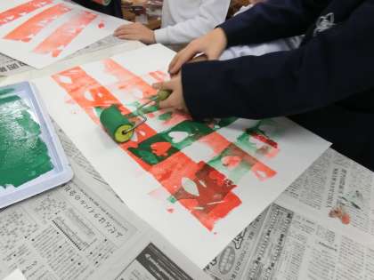 図工科の学習でコロコロローラーを使いました。切り取った紙を画用紙に置き、ローラーをころころ。作品もさることながら、わいわい活動する子どもたちの表情がナイス!この後サインペンや色鉛筆で人や虫、動物などを登場させます。