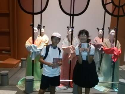 江戸時代の庶民のくらしをジオラマで体験したり、大阪の伝統芸能の文楽の人形のしくみも学習しました。