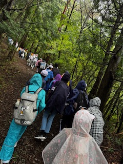 雨の中のトレッキングですが、みんな頑張って歩いています!