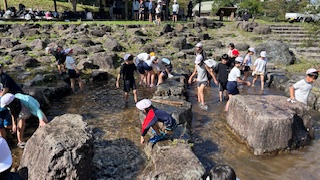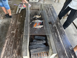 ひんやり冷たい川に入りニジマスをつかむことができました!!すぐにつかめた子もいれば、苦戦していた子もいました。捕まえた魚は、焼き魚にして美味しくいただきました。