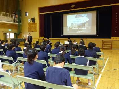 18日(金)、天王寺中学校の生徒会のみなさんと先生方が、聖和小学校に来てくれました。そして、天王寺中学校の学校紹介をしてくださいました。中学校での学校行事や、部活動、学習の様子などを写真や動画を入れながら、天王寺中学校の先輩方がわかりやすく説明してくださいました(^O^)「生徒会は何をしているのですか?」「部活動はどれくらいの時間あるのですか?」など、子どもたちの質問にも丁寧に答えてくださいました。子どもたちは、来年度天王寺中学校へ進学するのがますます楽しみになりました☆
