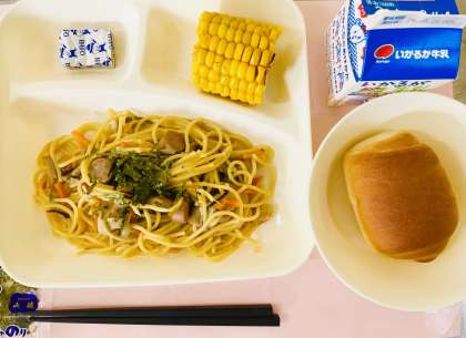 しいたけ、しめじの他に、野菜やウインナーを使用した具だくさんのスパゲッティです。醤油の風味が程よく感じられ、きのこが苦手な児童にも食べやすかったようです。