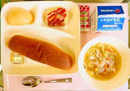 具材には、ツナ(缶)と下茹でしたじゃがいもを使用しています。一クラス分ずつバットに入れてオーブンで蒸し焼きにし、教室で切り分け、ケチャップをつけていただきます。