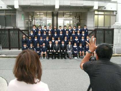 今日、6年生が卒業アルバム用の学級写真を撮っていました。