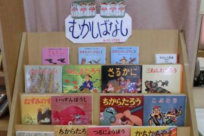 前回は「水木しげるさん特集」でしたが,今回は写真のように昔話と伝記を集めました。