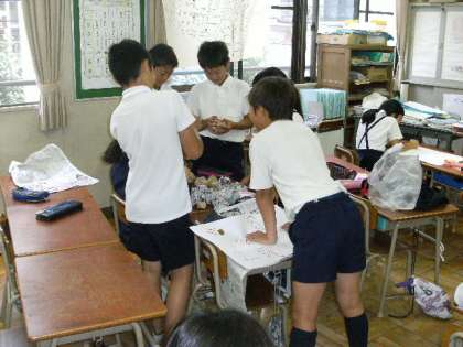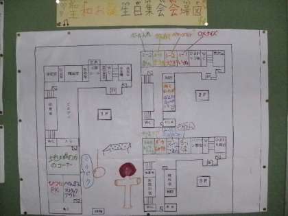 にこにこ班活動では、それぞれの班で工夫したゲームを作ったり、お店の看板を作ったりしていました。