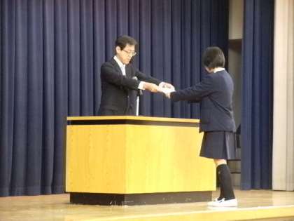 終業式では、校歌、校長先生からのお話、冬休みの暮らしについてのお話に続き、2学期の皆勤賞の贈呈がありました。また、児童を代表して、1年生と6年生の2名から、今学期の頑張りを振り返った作文の発表がありました。たいへん立派な態度でした。