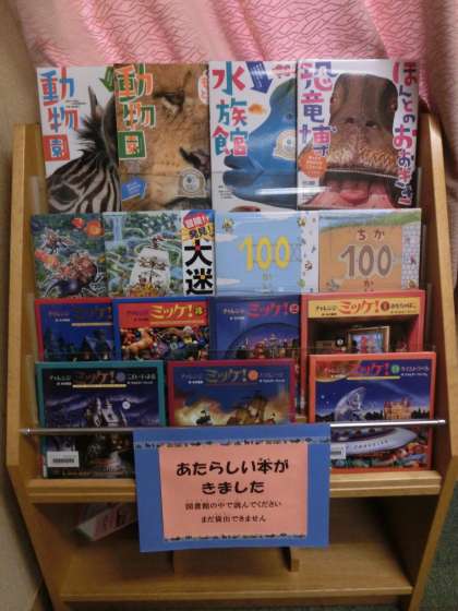 物語や図かん,折り紙の本やなぞなぞの本など,たくさんの種類があります。古くなって,新しく買い直した本もあります。