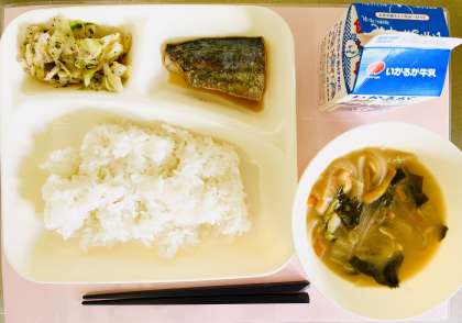 さごしをオーブンで蒸し焼きにし、給食室で作った醤油だれをかけています。身が柔らかくて食べやすかったようです。