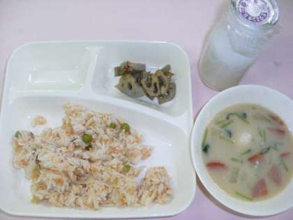 紅ざけフレークで全体がピンク色になるちらしずしで、お祝いらしさを出しています。