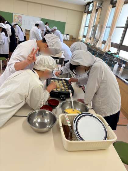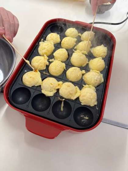 最初は上手に丸くならなかったけど、徐々にきれいな丸いたこ焼きを作ることができました。